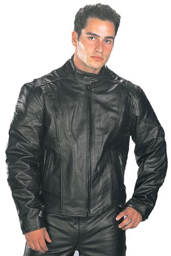 Men's classic cruiser motorcycle jacket made of premium top grade leather. Featuring zip-out liner front zipper closure, two side zipper pockets, two chest vents with zipper closure, lower back vents, zipper cuffs with webbing. Collarless design with snap button, side laces for comfort, inside left and right pockets, and fully lined with mesh fabric lining. If you are of a larger bulkier-build we suggest you order One Size Up then what you normally wear to compensate for Extra Room as this is a fitted Jacket. Motorcycle jackets, boots and motorcycle accessories by Xelement only found here at the webs # 1 online leather store. Shop with confidence and save.
