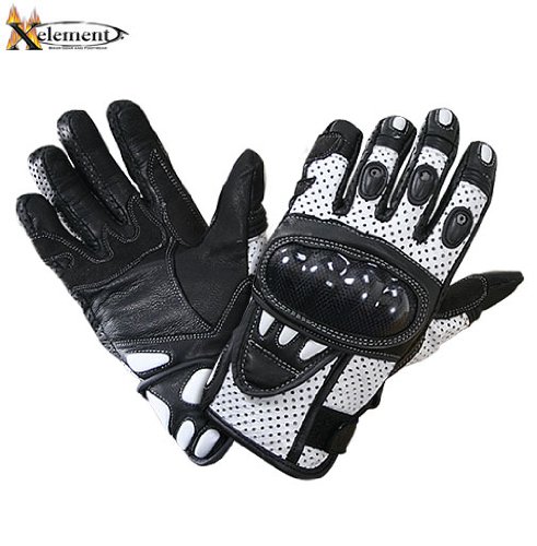 Xelement Black and White Leather Motorcycle Racing Gloves - Size : XL Feature