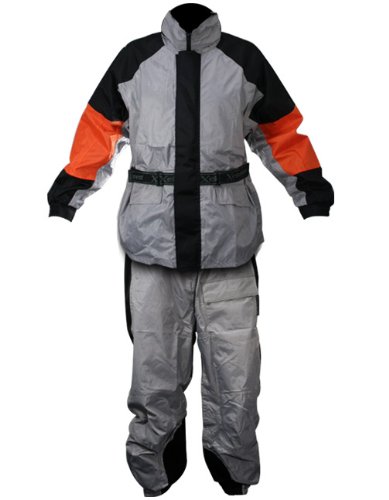 Xelement Men's 2 Piece Black, Silver And Orange Motorcycle Rainsuit - Size : Large Review