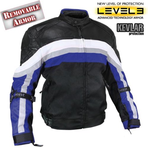 Xelement Men's Armored Black and Blue Tri-Tex Fabric and Leather Trim Jacket with Level-3 Advanced Armor and Kevlar Protection - Size : 5XL Review