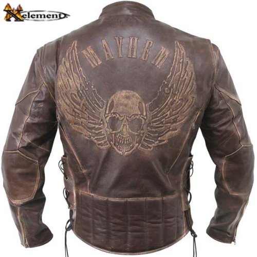 Xelement Men's Premium Brown Distressed Leather Flying Skull Racer Jacket - Size : 3XL Review