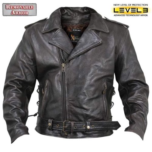 Xelement Men's XS-589 Armored Distressed Leather Classic Biker Jacket - Size : 3XL Feature